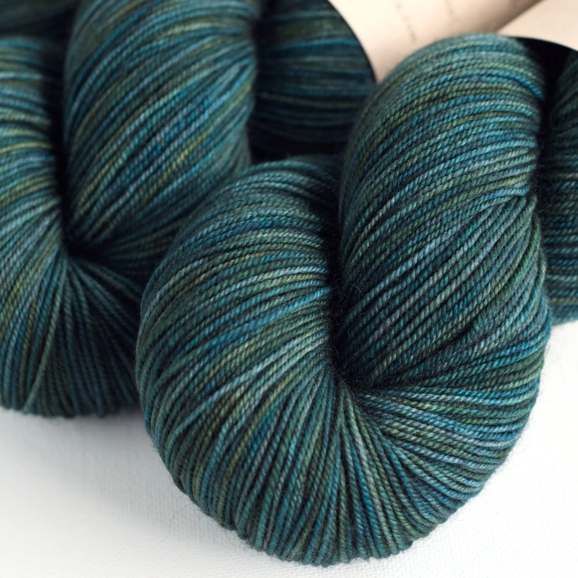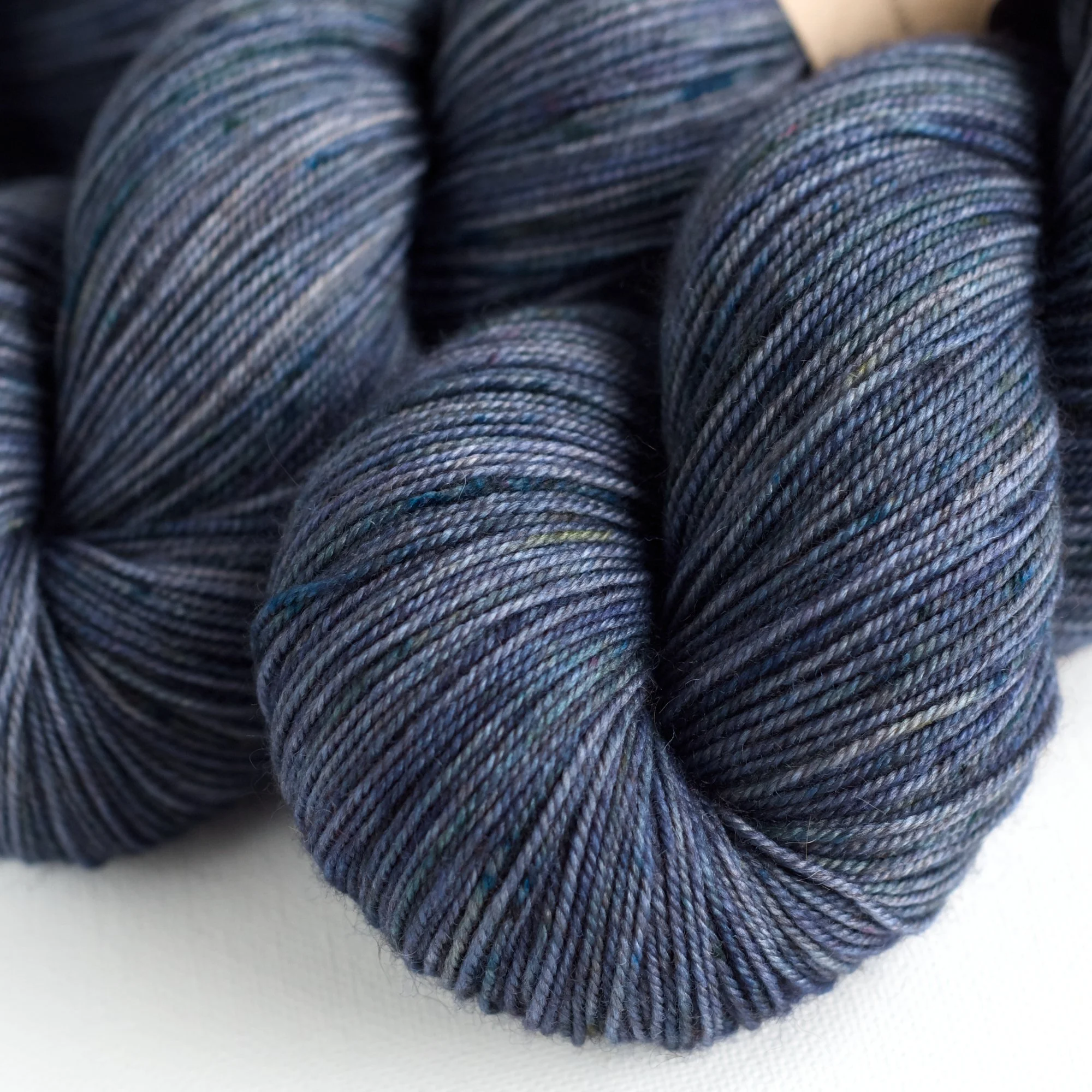 Umbra is a blend of superwash merino wool, natural grey yak, and nylon. It is a soft and springy yarn that can be used for a wide variety of projects including socks and garments. This base is a heathery medium grey color. Colorways are slightly muted and darker on this base.